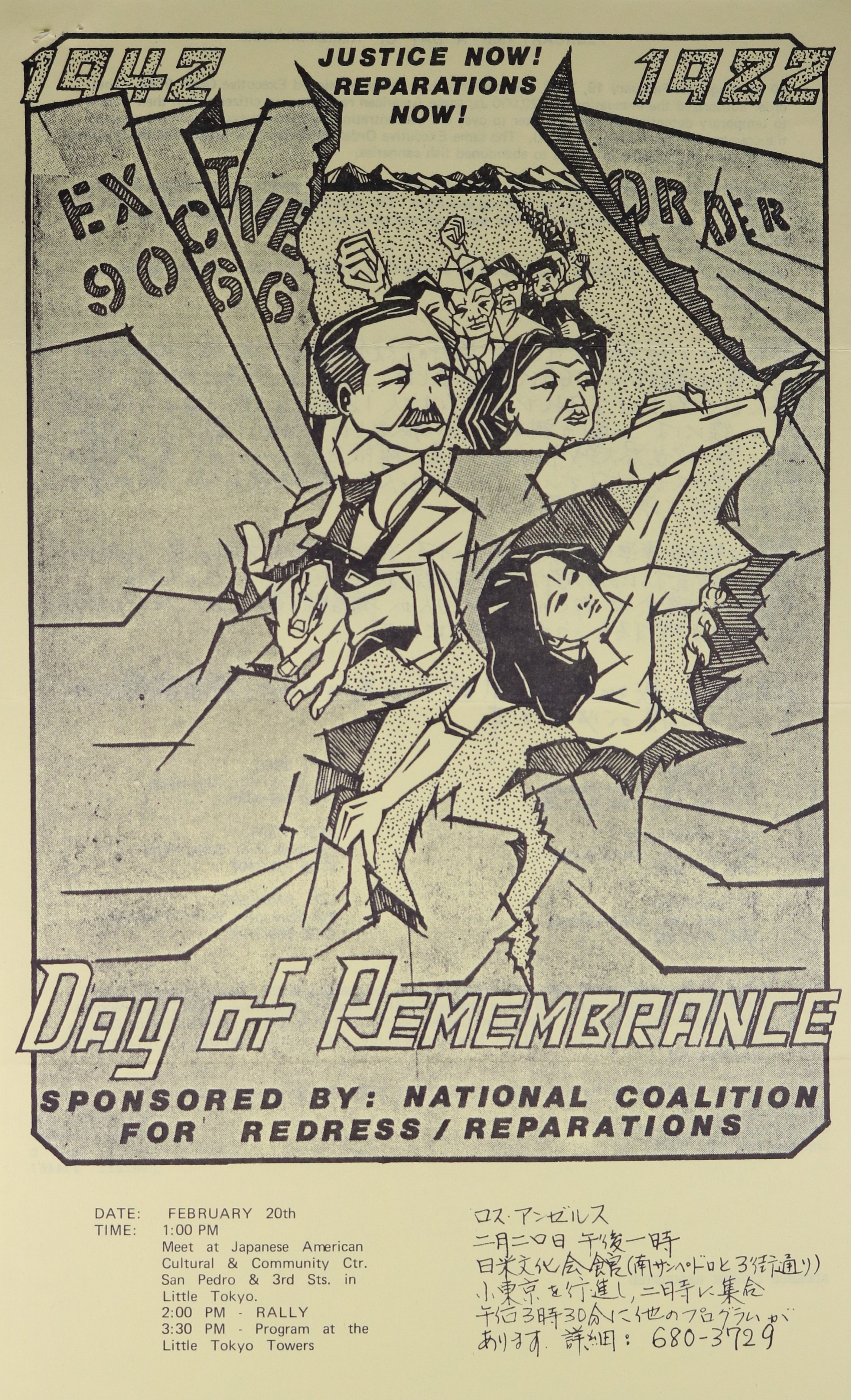 National Coalition for Redress/Reparations Day of Remembrance flier, 1982