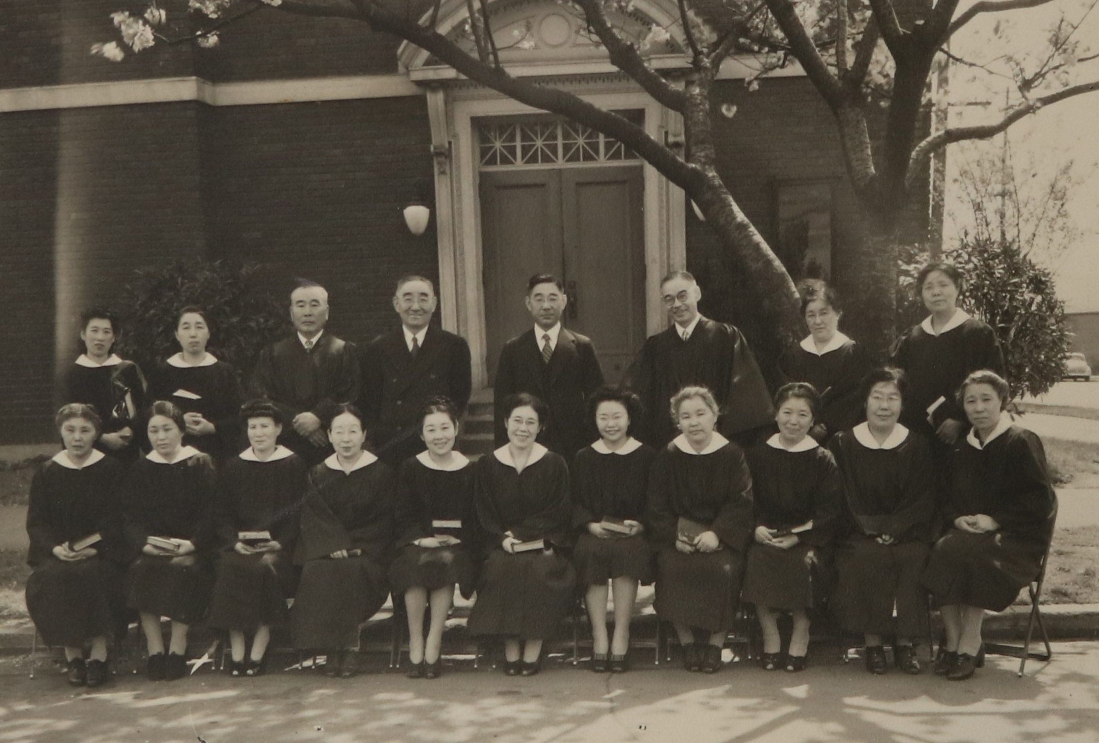 Photograph of the choir and ministers of the Seattle Nichigo Combined Church, including senior pastor Rev. Masahiko Wada (back row, fourth from left). The Nichigo congregation provided Japanese-language services to members of several Protestant denominations in Seattle immediately following the end of World War II.